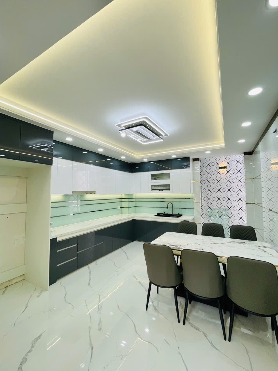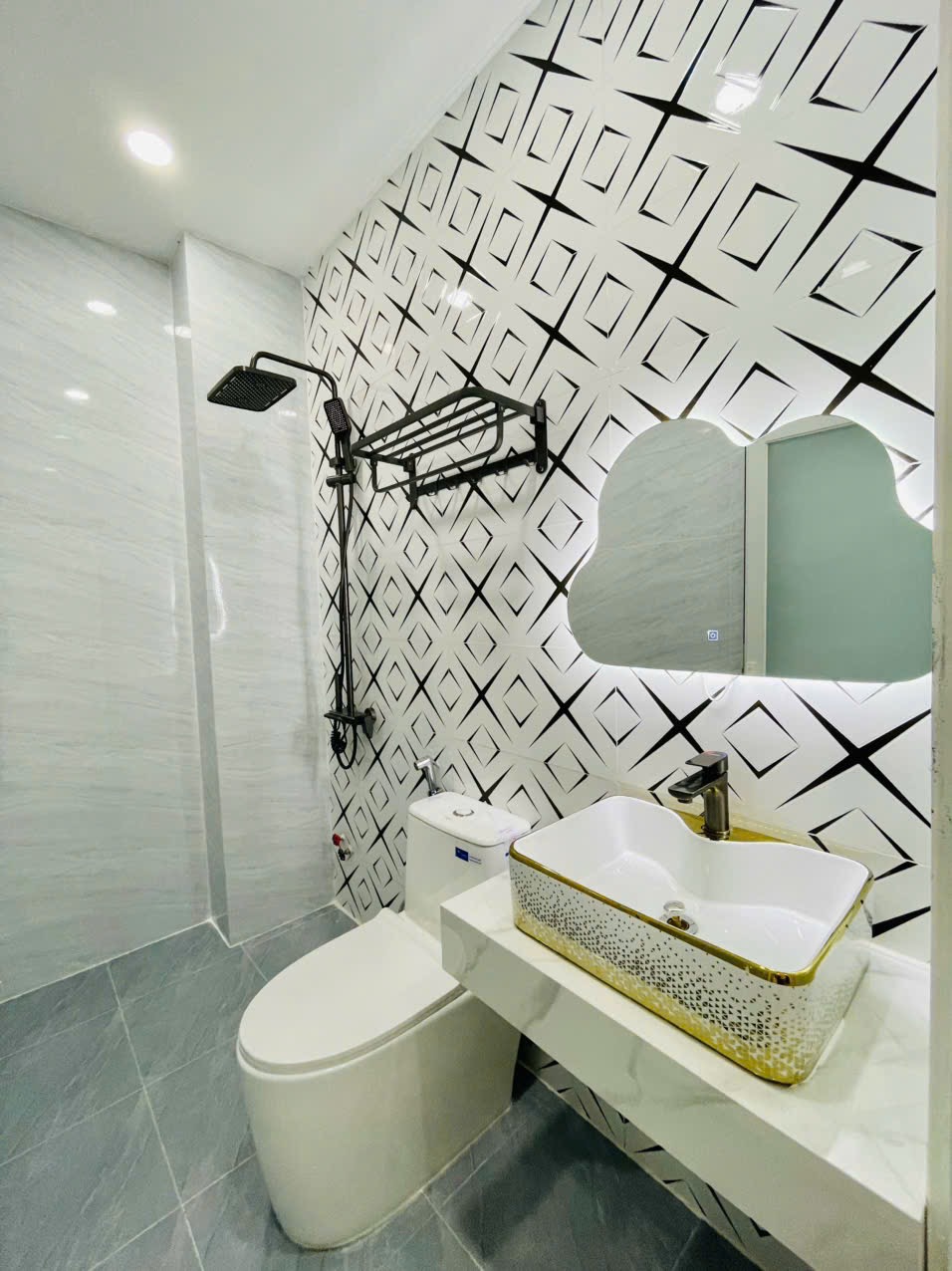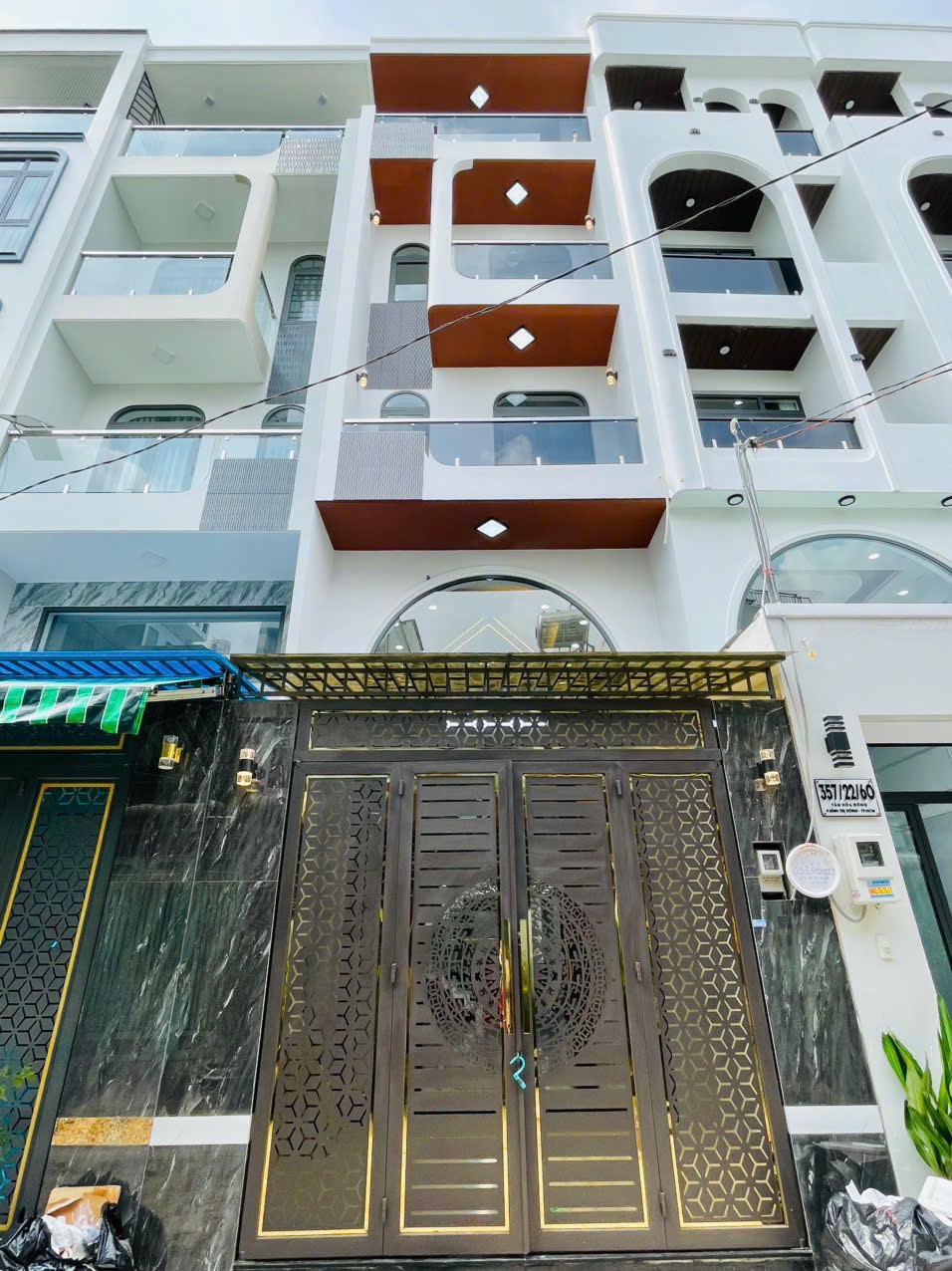 👉 Nhà xây 5 tấm, 1 trệt, 1 lửng, 3 lầu. Gồm 5 PN, 6 WC.